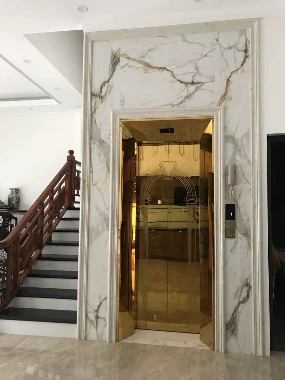 Thang máy ZIEHL-ABEGG 4 stop 450kg được thiết kế với cabin hiện đại, sang trọng, phù hợp với nhiều phong cách kiến trúc. Người dùng có thể tùy chọn vật liệu hoàn thiện như inox gương vàng, kính cường lực, hoặc vân gỗ, mang lại vẻ đẹp tinh tế cho không gian. Kích thước cabin được tối ưu hóa để tiết kiệm không gian, rất phù hợp với các ngôi nhà phố có diện tích hạn chế.